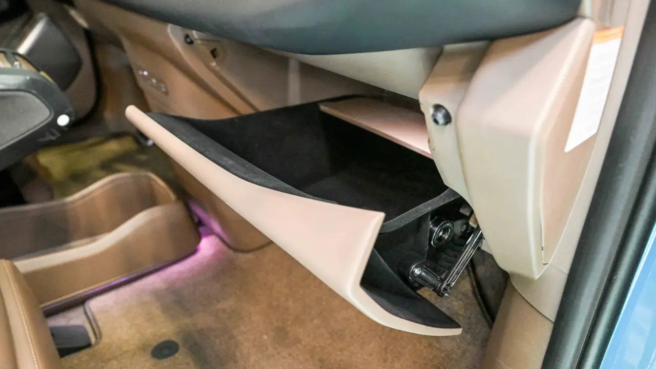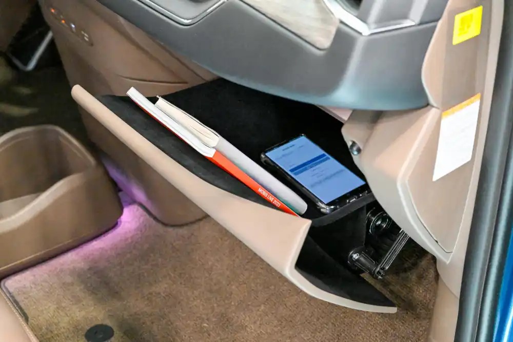 O porta-luvas com a tecnologia “Parabolic Motion” já está pronto para ser implementado nas linhas de produção. Sua estreia já está programada para estar presente na versão topo de linha do EV9, novo SUV elétrico produzido pela Kia.